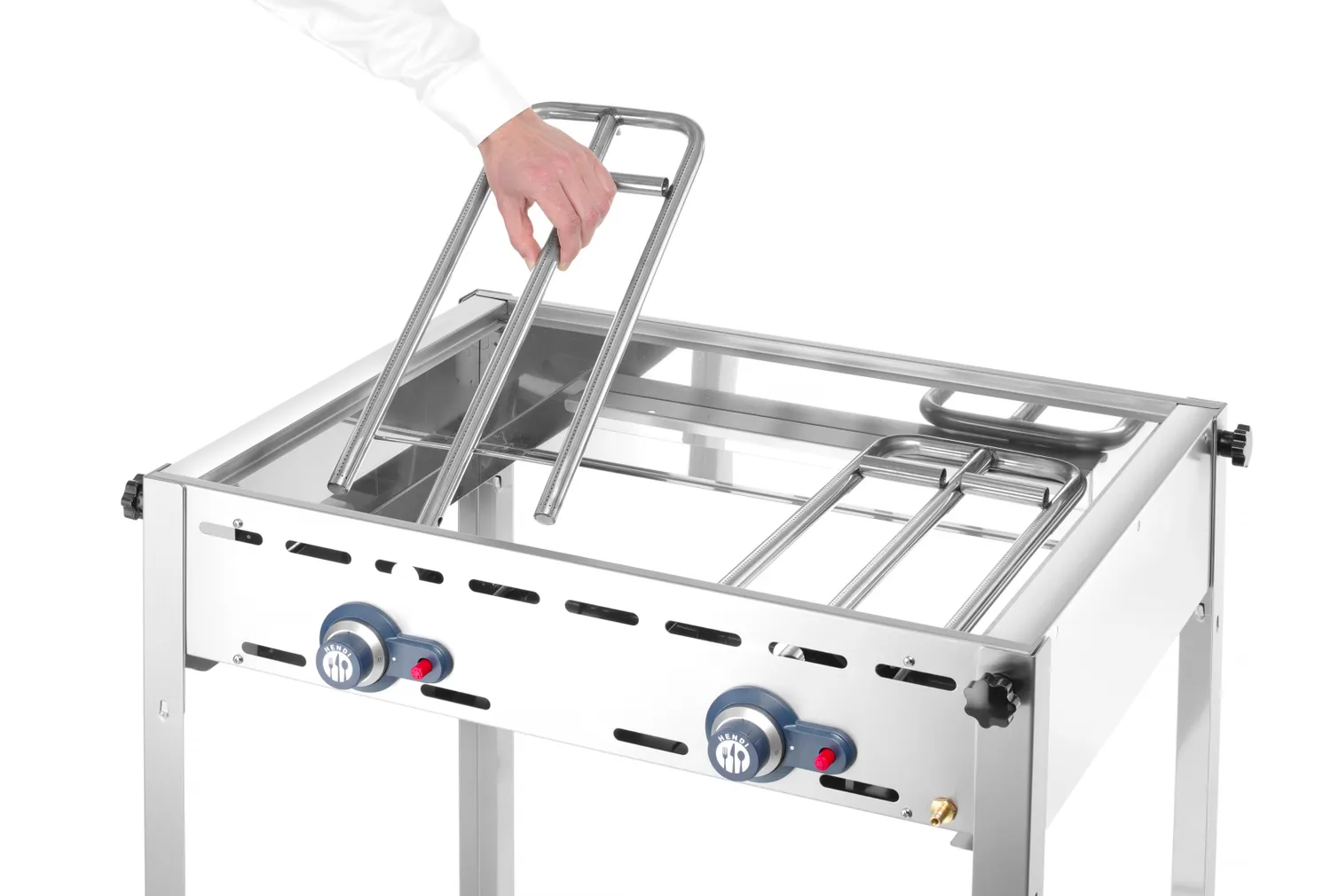 Mycket mindre känslig för vind tack vare den förbättrade lufttillförseln. Lätt att rengöra, tack vare t ex avtagbara brännare och avtagbar Gastronorm 2/1 droppbricka.