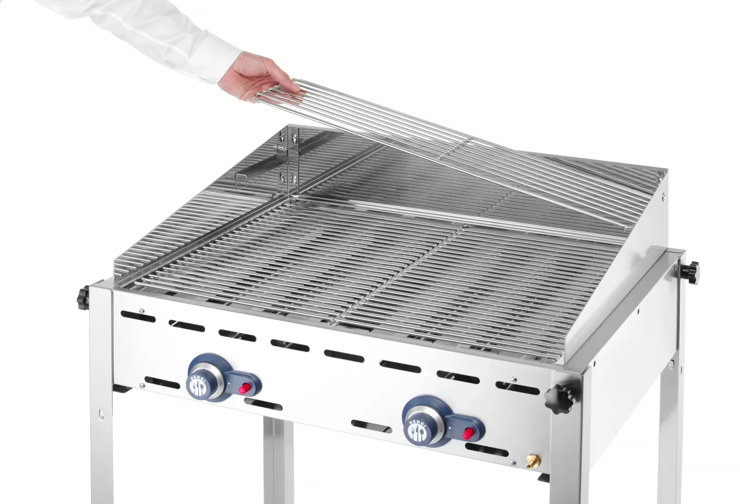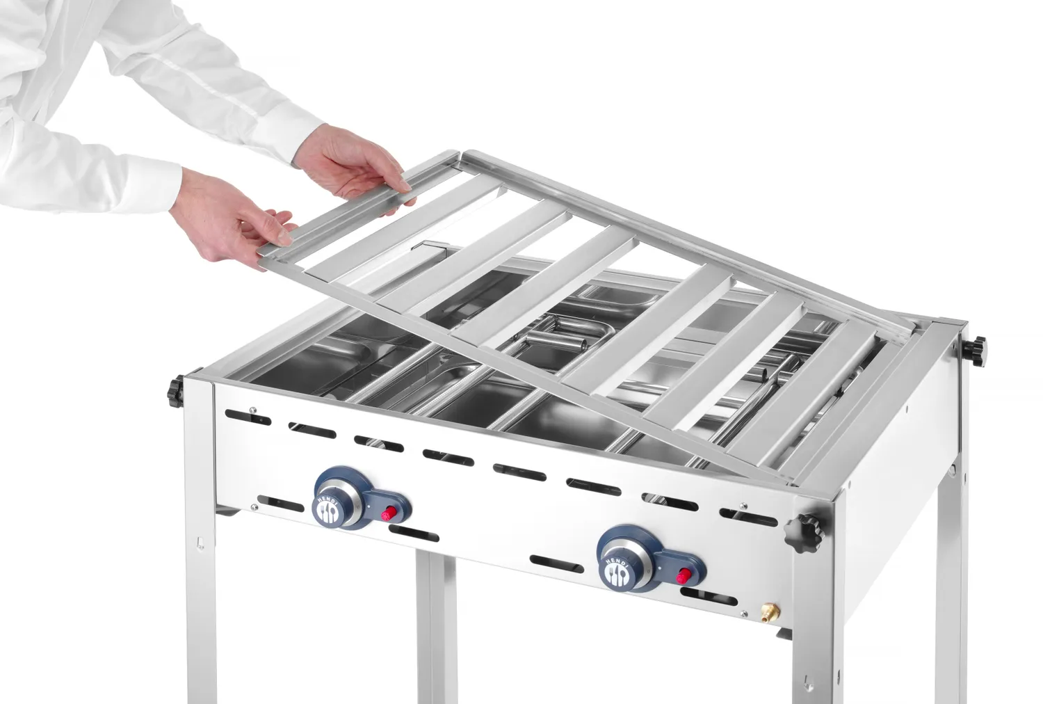 Förhöjt galler i rostfritt stål för att hålla varma såser och färdig mat.