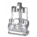 Krydd set i 5 delar – olja, vinäger, peppar, salt & tandpetare tillverkad i rostfritt stål.