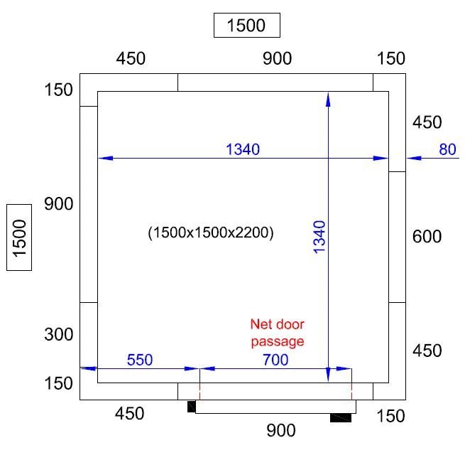 Dämpa. interiör BxDxH (mm) 1340x1340x2040