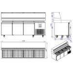 Pizzabänk 3 dörrar 1365mm med kylränna