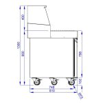 Pizzabänk 90cm med kylränna och glastopp