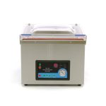 Vakuum maskin 300 mm tätningslist, tätningsstångsbredd: 5 mm. Justerbar cykel- och tätningstid, automatisk och manuell drift. Lämplig för vakuumpackning av flytande och våt mat. Med marinatfunktion. Utrustad med en digital display och en manuell manometer. Högkvalitativ oljepump som ger höga tryck (1009mbar) och hög vakuumhastighet. Stomme och kammare av högkvalitativt rostfritt stål. Stora urtag i botten och kupolformigt genomskinligt lock gör det möjligt att packa stora portioner. Oljekyld pumpkapacitet: 133,3 L / min.